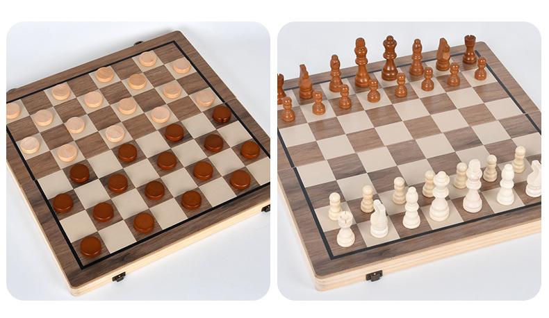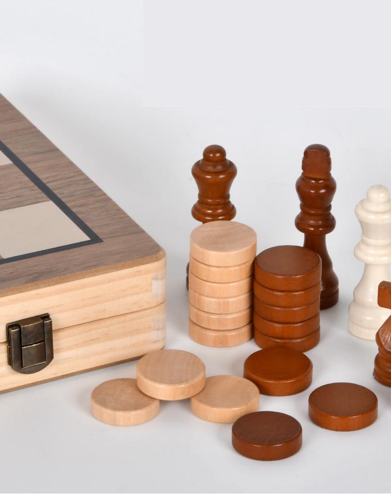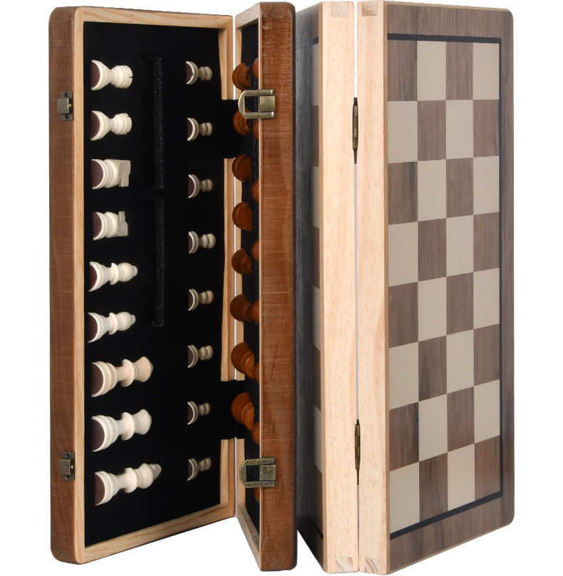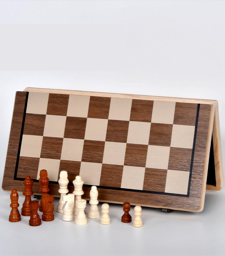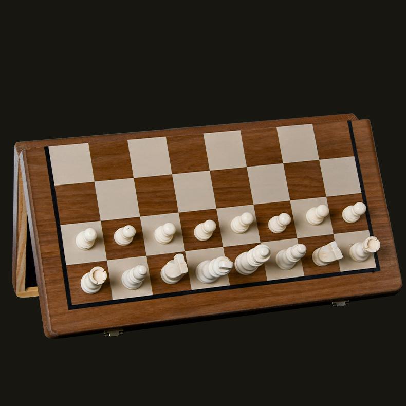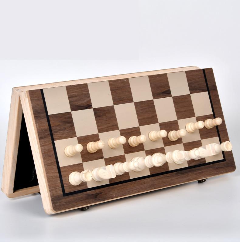 Wooden magnetic chess walnut color two-in-one folding chess adult children competitive educational toys